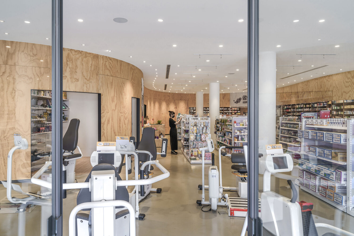 藥局不再是只能領處方籤調劑的地方,佐野健太先生曾分享「我想把公園代表著放鬆和歡樂的概念融入這個設計,創造出有安全感、被照顧的感覺。」為服務更多長者提滿滿安全感,《惠生大藥局》一樓設有樂齡健身房,能提供爺爺奶奶幫助老人家做簡單復健以及肢體伸展的運動,不用再怕大熱天冒著中暑的風險,在公園曬大太陽。