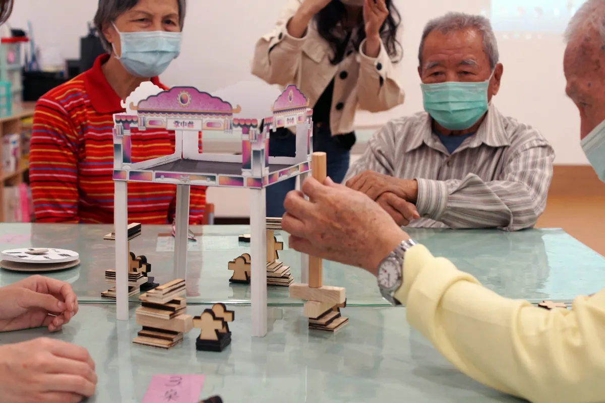 隨著科技的發展與娛樂的多元化,布袋戲藝術在世代的變遷下逐漸凋零,卻是長者們童年時的重要回憶,結合雲林在地傳統文化布袋戲,透過布袋戲的人物特性轉化為「口語」、「肢體」、「記憶」的問題,訓練長者各方面的能力,並利用堆疊積木的方式,訓練長者空間感與抓取,活化腦力、增進儲備認知能力。