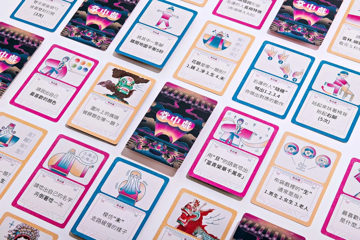 掌中戲的設計從文化和預防醫學兩個面向出發,透過平面和立體並存的簡單設計,讓長者擁有能樂在其中、百玩不膩、更貼近自身生活的遊戲,惠生大藥局亦邀請了許多阿公阿嬤參與設計過程、負責試玩的工作,讓設計師更了解使用者的需求,除了原有的字體大小外,這次更貼心的調整色彩,比如因長者感光和水晶體透光度降低,問題卡原本已漸層色改為單色設計, 避免看不清或是閱讀吃力的問題。